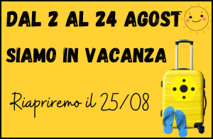 Comunichiamo a tutti i nostri clienti, fornitori e partners che dal 2 al 24 agosto compresi i nostri uffici saranno chiusi. L'azienda riprenderà regolarmente tutte le attività lunedì 25 agosto 2025.